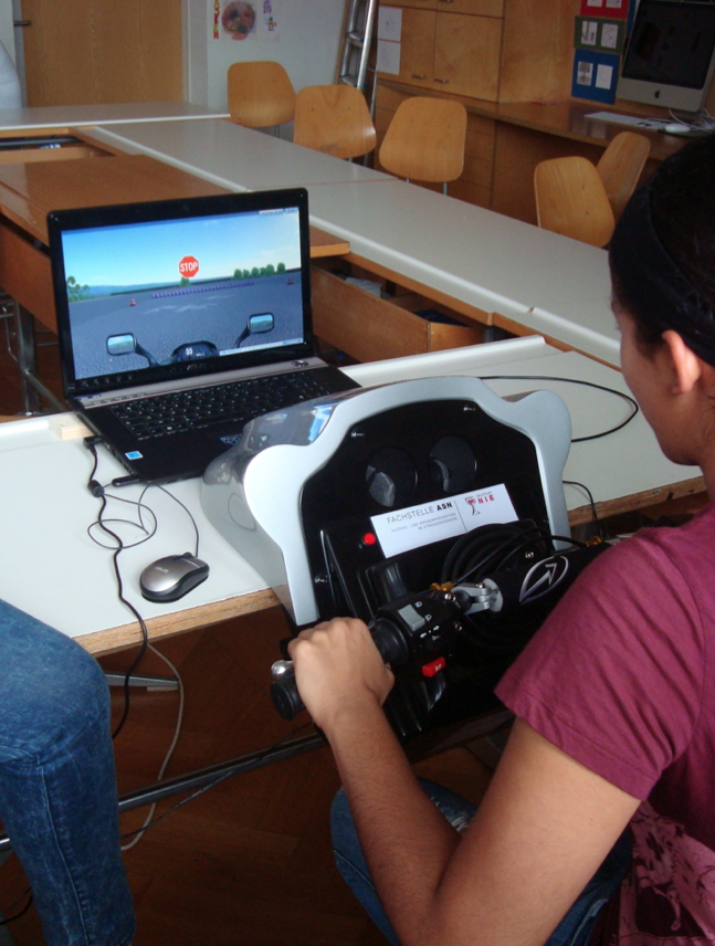 Die Veranstaltung ist auf Jugendliche der 3. Sekundarstufe ausgerichtet und wird klassenweise (ca. 20 SchülerInnen) besucht. Betreut wird die Intervention (mind. 45 Minuten) von zwei ASN-MitarbeiterInnen. Pro Klasse werden fünf Scooter-Fahrsimulatoren eingesetzt (SimuScooter: nachgebildete Scooter-Lenkung an Tisch befestigt mit einem Monitor).